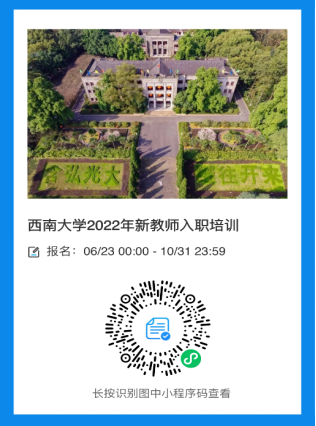 为使新入校教师了解我校的校史、校情,尽快掌握高等教育教学的理念和基本技能,顺利实现角色转变,学校拟于2022年10月17日至10月29日(10月23日周日休息)对新进教师进行集中培训,现将培训相关情况预通知如下: