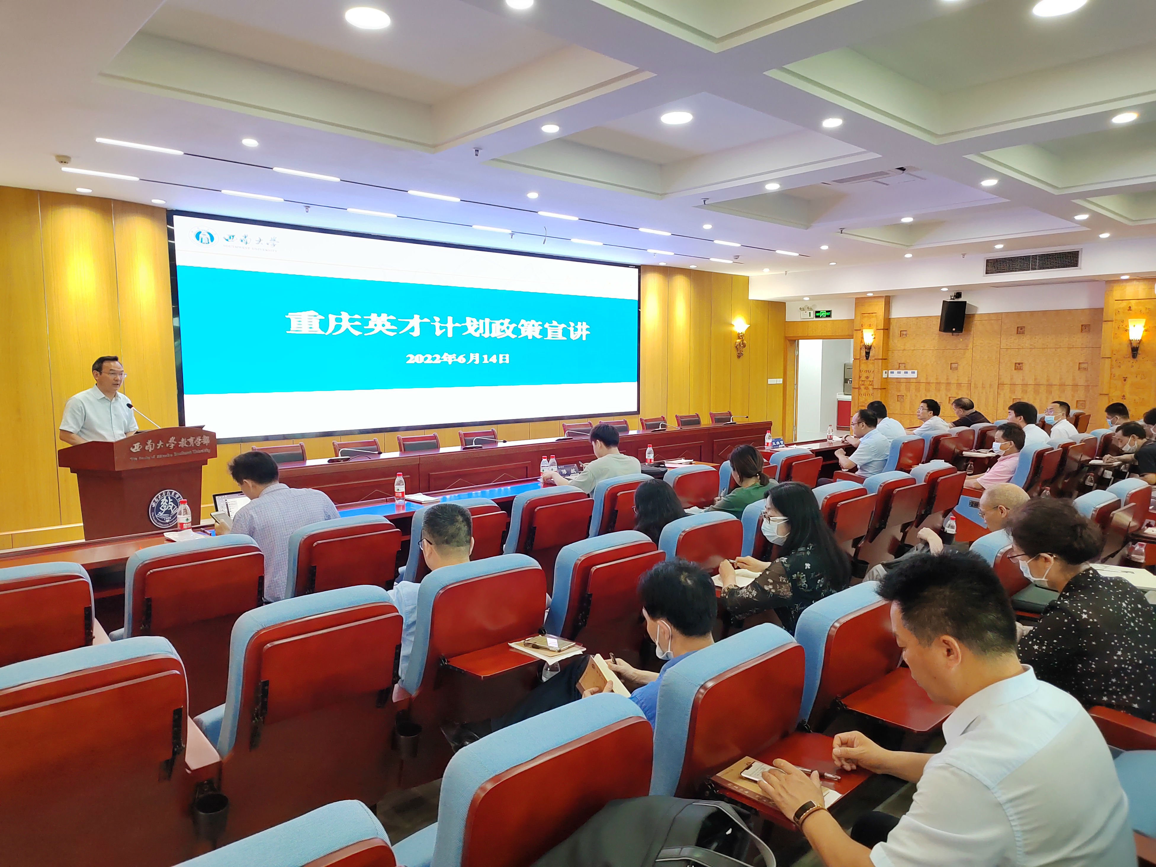 为帮助学校各教学科研单位和广大教师更深入了解“重庆英才计划”的政策与服务,6月14日下午重庆市委组织部、重庆市人才交流服务中心到校作政策宣讲。重庆市委组织部人才处副处长王洪官,重庆市人才交流服务中心干部傅航,学校各教学科研单位分管人才人事工作的领导、人力资源资源部、人才工作办公室相关人员参会。会议由人力资源部 党委教师工作部部长王志坚主持。