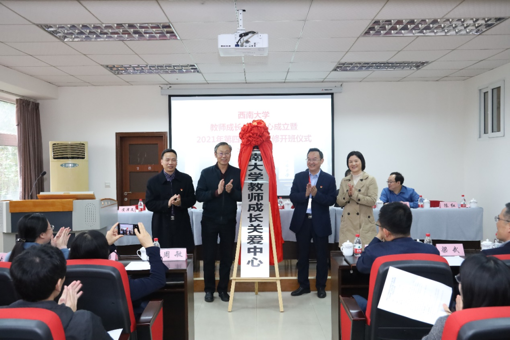 校党委副书记安春元、人力资源部 党委教师工作部部长王志坚、心理学部党委书记黄泽文、部长陈红为betway88西汉姆联教师成长关爱中心揭牌。
