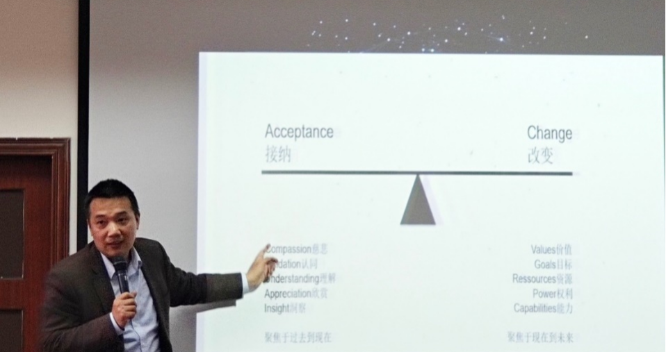 心理学部部长、betway88西汉姆联教师成长关爱中心主任陈红教授发言时谈到,教师的心理保健是教师成长的重要组成部分,感谢学校信任,依托心理学部来建立教师成长关爱中心,心理学部有着较强的师资队伍和学科实力,为我们做好学校教师成长关爱工作提供了强有力的学科支持和人力资源保障。学部精心筛选了一批该领域的骨干教师,为全校教职工提供专业的心理服务,助力全校教职工都成为幸福的进取者。心理学部心理咨询与培训中心主任、教师成长关爱中心办公室主任杨发辉老师带领与会人员参观了教师成长关爱中心,并跟2021年第四期国情研修班学员分享了教师如何进行成长关爱。