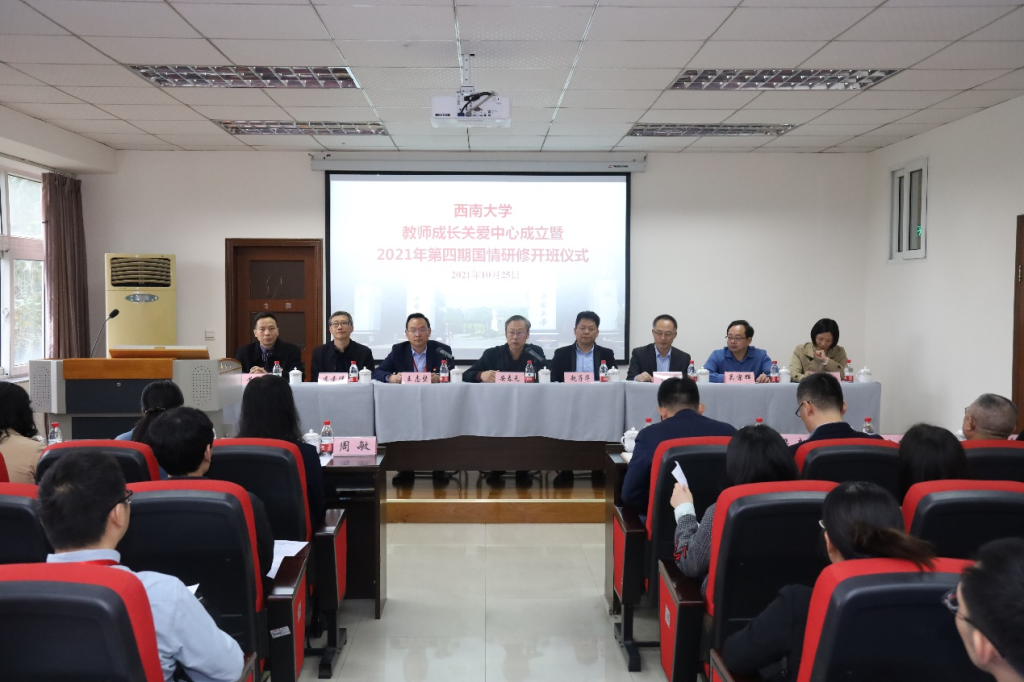 校党委副书记安春元在讲话中指出,学校党委高度重视教师工作,积极推动高素质、专业化、创新型教师队伍建设,由人力资源部 党委教师工作部和心理学部共同牵头组建教师成长关爱中心,是发挥学校优质资源,关注教师心理健康,增加教师职业认同感、使命感,落实立德树人根本任务,为全体教职工办实事的一项重大举措。心理学部是学校双一流建设学科,有一支强大的专业队伍,可以为老师们提供专业的支持、专门的服务,帮助老师们成长发展,中心依托心理学部建设,是发挥学校优质资源,一定会达到预期效果。学校后续还有一系列的举措,帮助老师们解决发展道路上面临的各种困难。目前,学校发展到了关键时期,希望老师们始终保持健康的心理,健壮的体魄,把人生目标定高一点,把人生格局定大一点,立德树人、争做新时代有“四有”好老师。同时希望即将前往井冈山参加第四期国情研修班的老师们深入了解国情、民情,拓展视野,加强交流,提升素养,并预祝研修活动顺利。