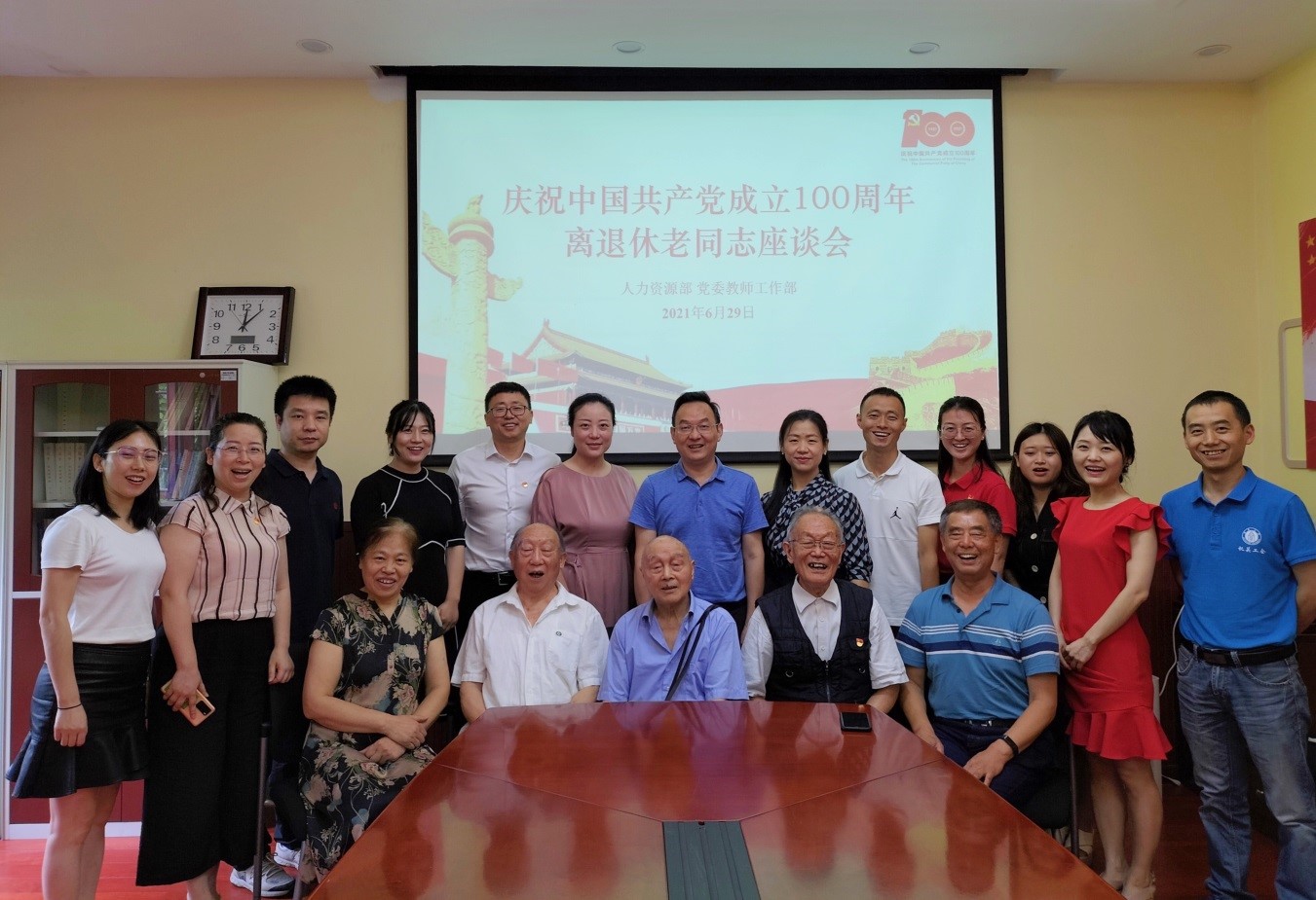 为继承和发扬离退休老同志理想信念坚定、乐于奉献、廉洁奉公的高尚品质和崇高精神,6月29日上午,人力资源部党支部召开庆祝中国共产党成立100周年离退休老同志座谈会。会议由支部书记王志坚同志主持。