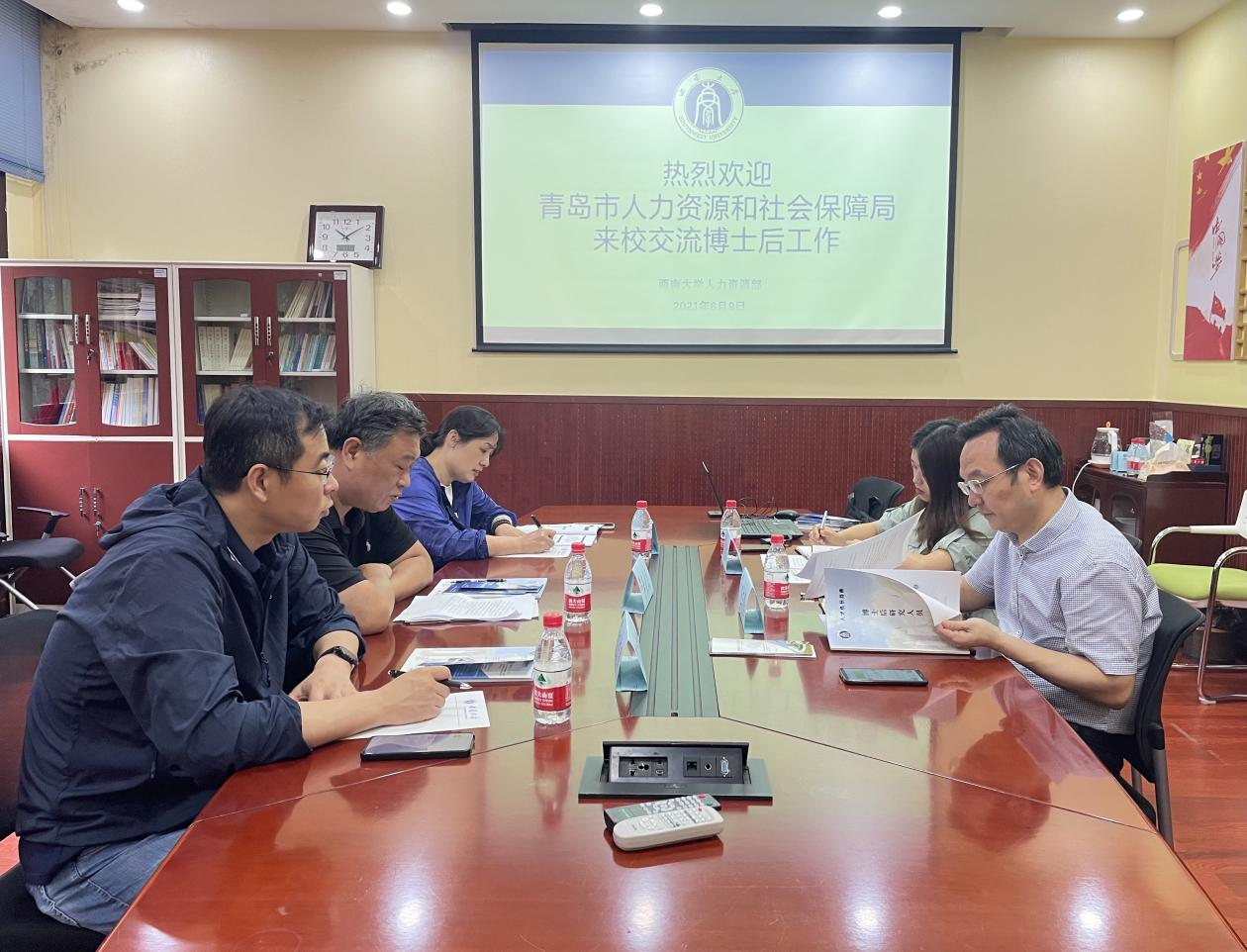 王志坚代表人力资源部 党委教师工作部对青岛市人力资源和社会保障局一行来校调研表示欢迎,就学校学科特色、博士后选聘培养工作等方面进行了简要介绍。李桂民重点介绍了青岛市博士后引才政策和2021年中国·山东(青岛)博士后创新创业成果大赛的相关情况。双方还就博士后人才引进、发展意向及创新创业方面的需求等问题进行了深入交流。