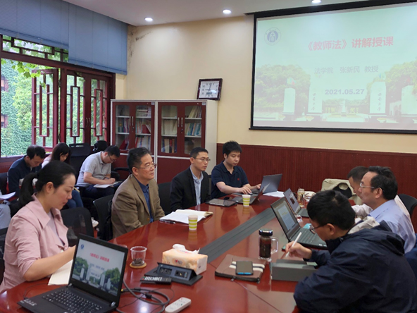 为了增强部门全体干部的法律意识,提高依法行政能力,5月27日上午,人力资源部 党委教师工作部邀请法学院张新民教授和张海鹏副教授,围绕《教师法》修订情况为全体员工开展了一次专题法律讲座,并征求了员工对《教师法》修订的意见建议。讲座由王志坚部长主持。