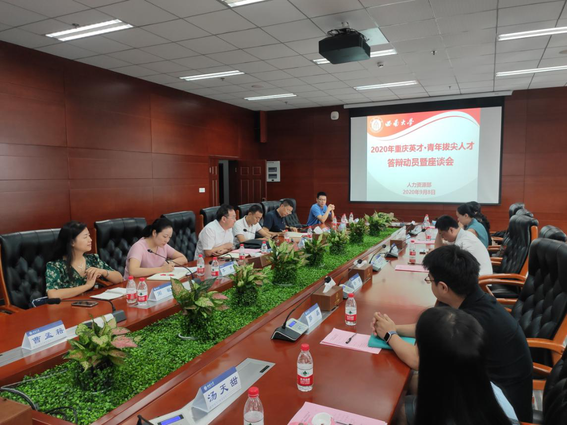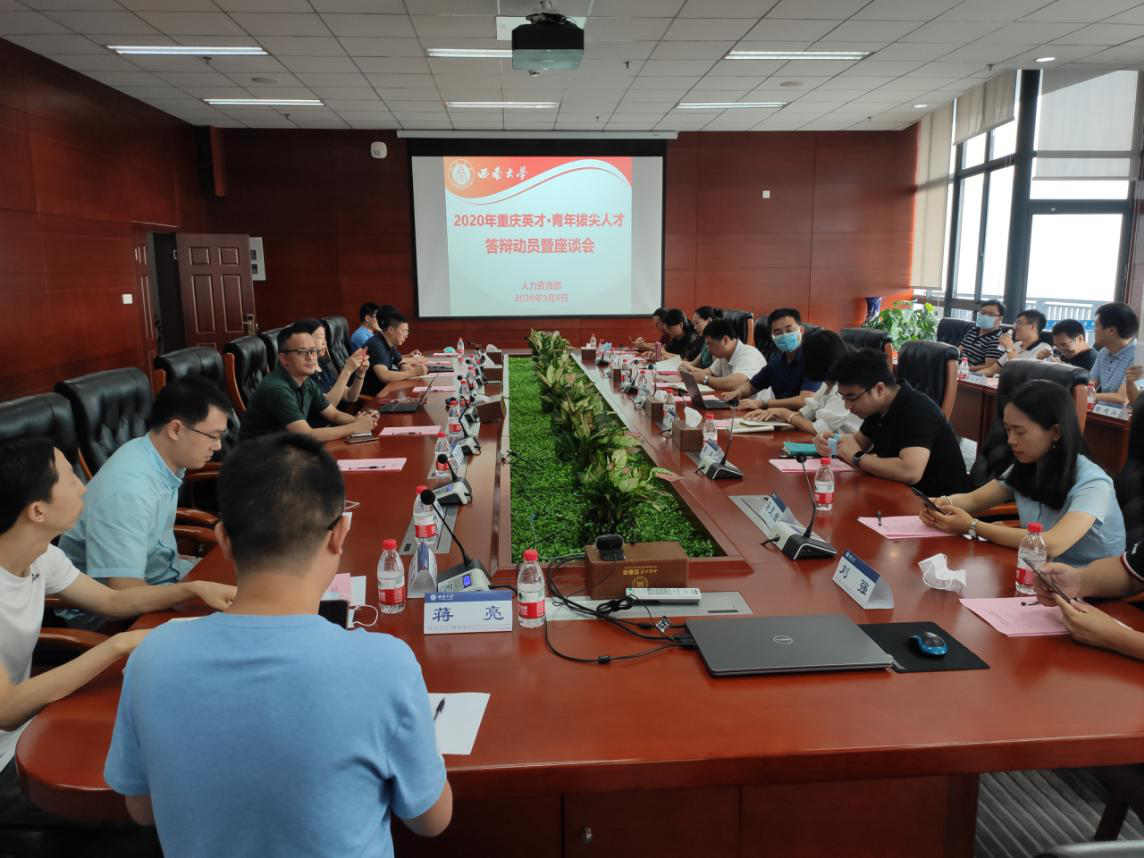 9月8日下午,人力资源部组织召开2020年重庆英才·青年拔尖人才答辩动员暨座谈会。人力资源部部长、党委教师工作部部长王志坚,人力资源部副部长李燕、刘飞、明建,党委教师工作部副部长周敏出席会议,会议由明建副部长主持。