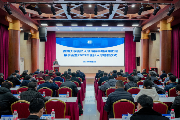 为充分发挥含弘岗位人才引领示范作用,促进以岗育才成效,推动学校高层次人才队伍建设。1月2日下午,学校在东方红会议厅举行了betway88西汉姆联含弘人才岗位中期成果汇报展示会暨2023年含弘人才岗位聘任仪式。学校党委书记李旭锋,校长张卫国,党委副书记潘洵,副校长王进军、王志坚出席会议,相关职能部门负责人、部分二级单位负责人、含弘人才岗位代表以及师生代表等120余人参会。会议由潘洵主持。