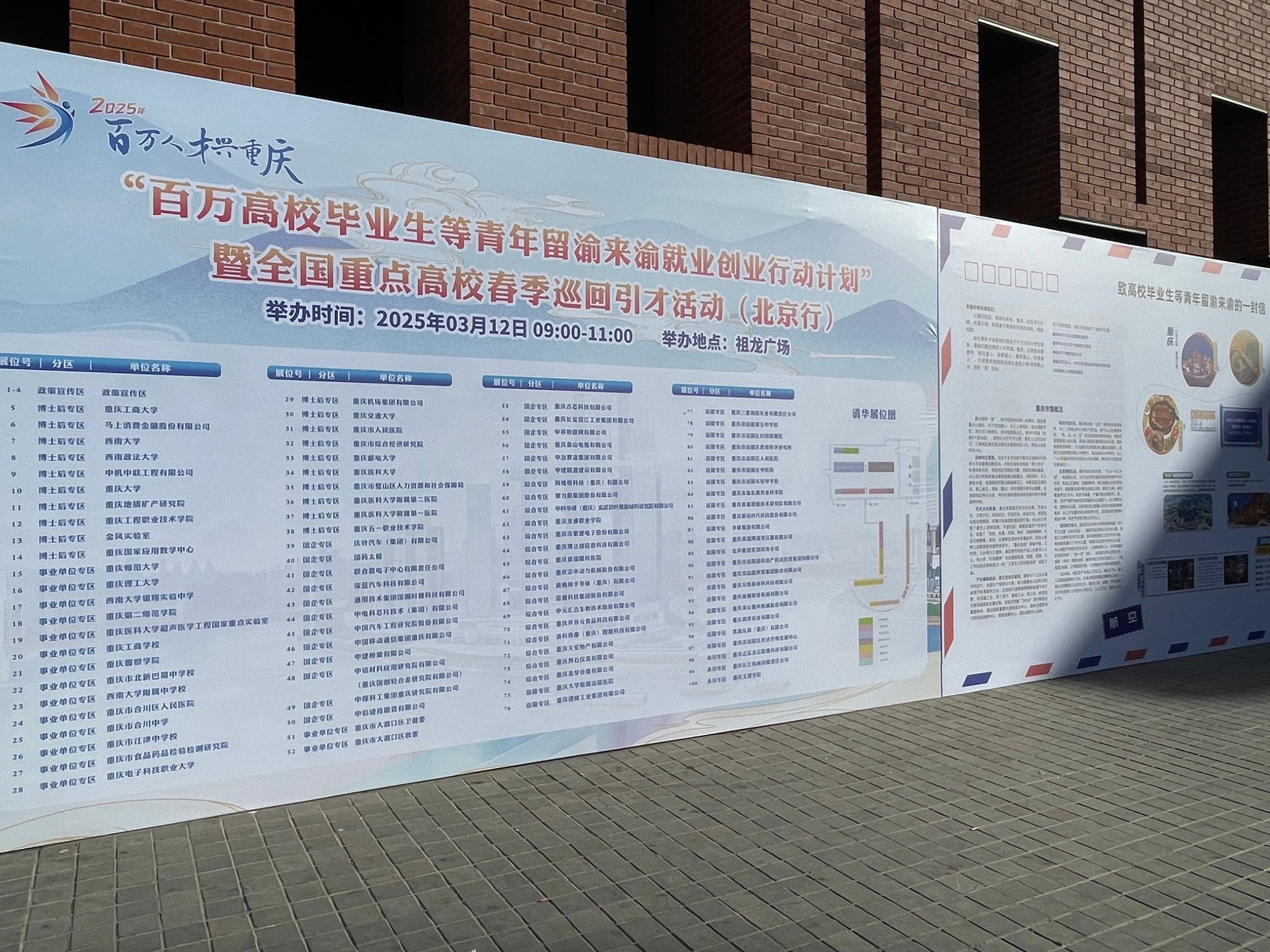 由中共重庆市委组织部、重庆市人力资源和社会保障局等有关部门主办的“百万高校毕业生等青年留渝来渝就业创业行动计划”暨2025年“百万人才兴重庆”全国重点高校春季巡回引才活动首站——“北京行”圆满收官。作为重庆市重点高校代表之一,betway88西汉姆联积极参与本次引才活动,与众多优秀学子面对面交流,宣传学校的人才政策、科研环境及发展机遇,吸引高层次人才关注重庆、选择betway88西汉姆联。